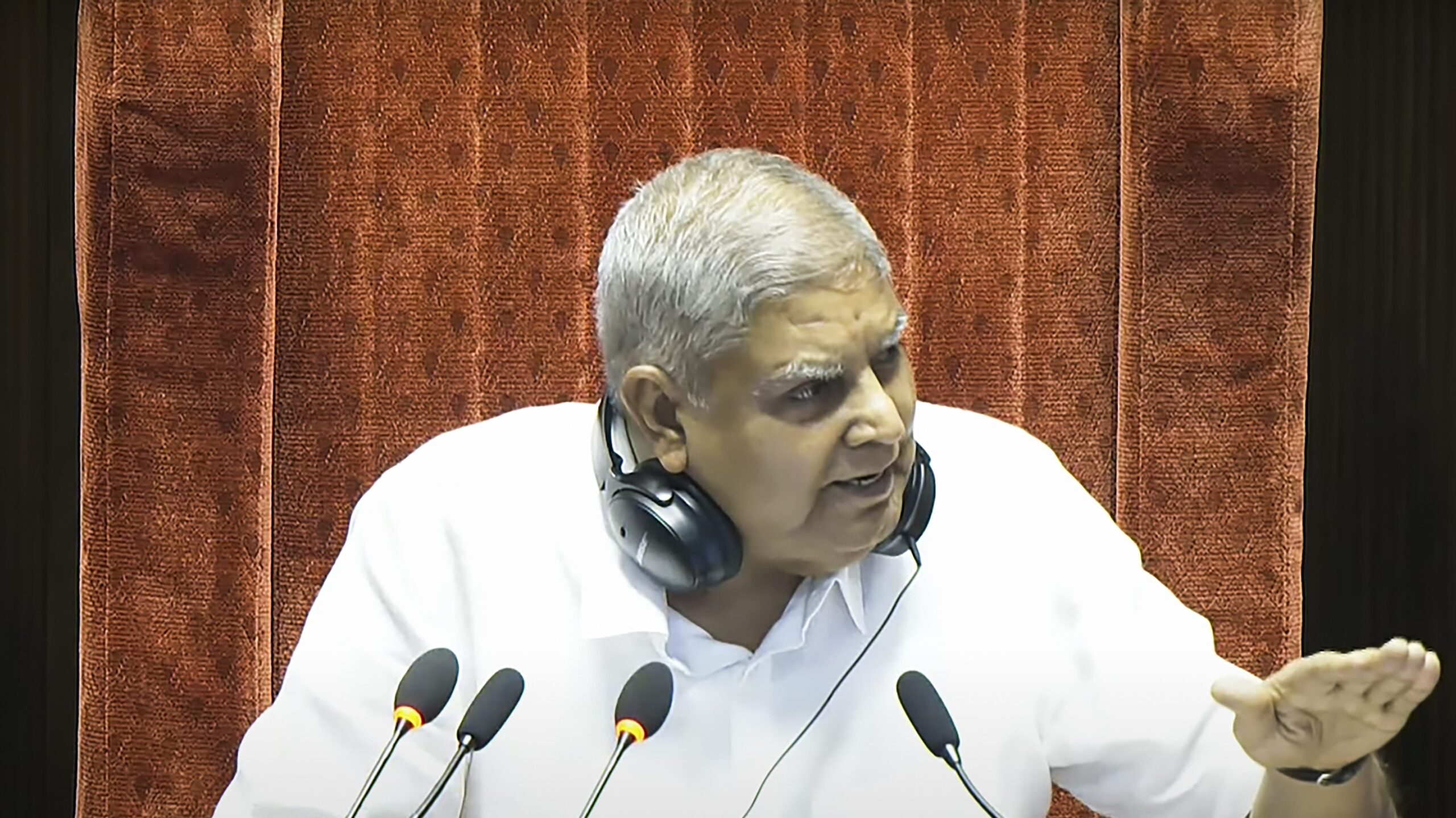 Underlining that this was necessary because the House had set high standards for itself, Dhankhar then mentioned the December 2024 discovery of wads of notes on a seat in the House – allegedly belonging to MP Abhishek Manu Singhvi.