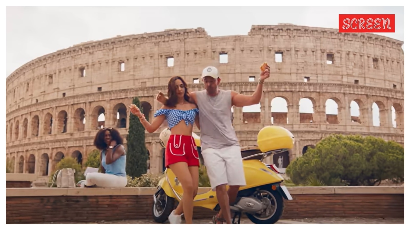 While shooting against the Colosseum, Hrithik is seen biting into a pizza as he grooves with Kiara. “Khana khao, naacho” (have food and dance),” he says in a candid behind-the-scenes moment. At the end of the video, Ayan calls it a schedule wrap. The cast and crew then celebrate by hugging each other and popping open a champagne bottle.