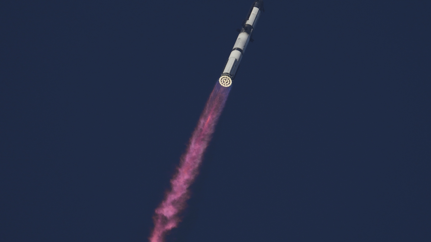 SpaceX’s mega rocket Starship makes a test flight from Starbase, Texas, Tuesday, Aug. 26, 2025.