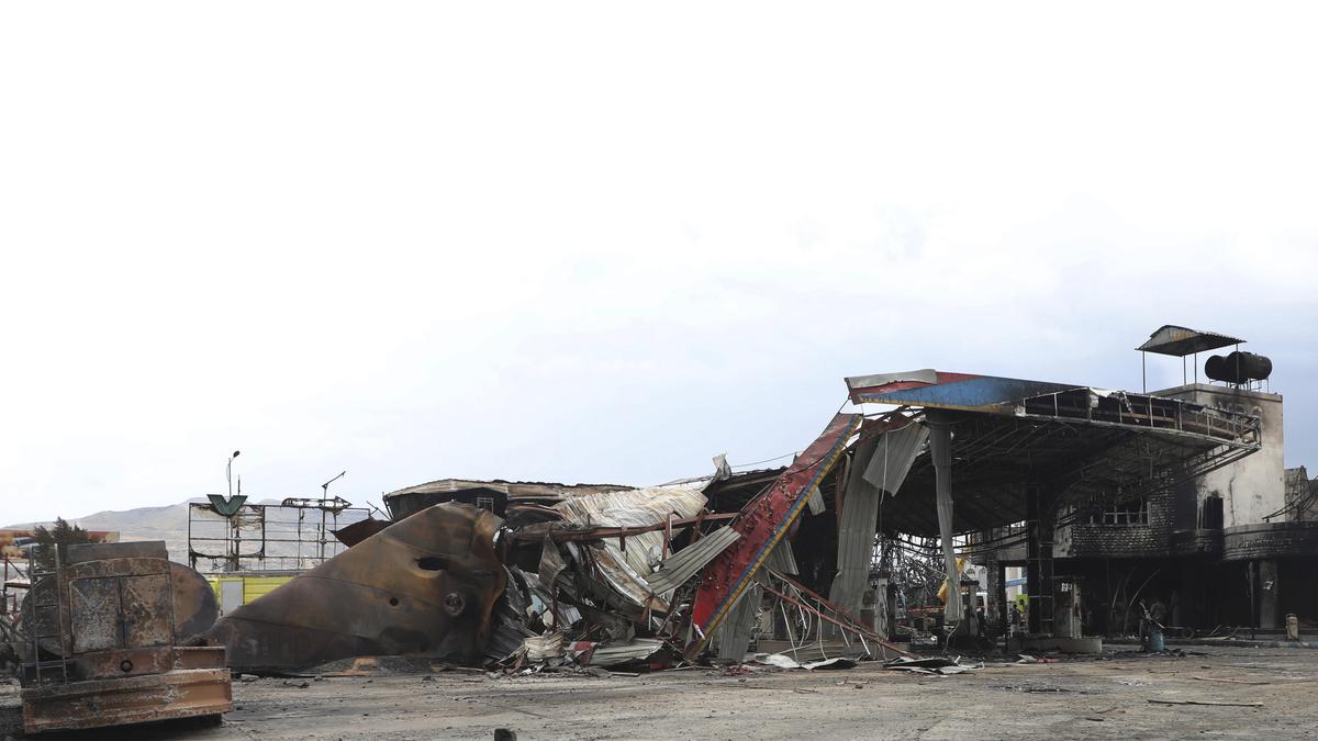 A damaged petrol station hit by Israeli airstrikes, in Sanaa, Yemen. File