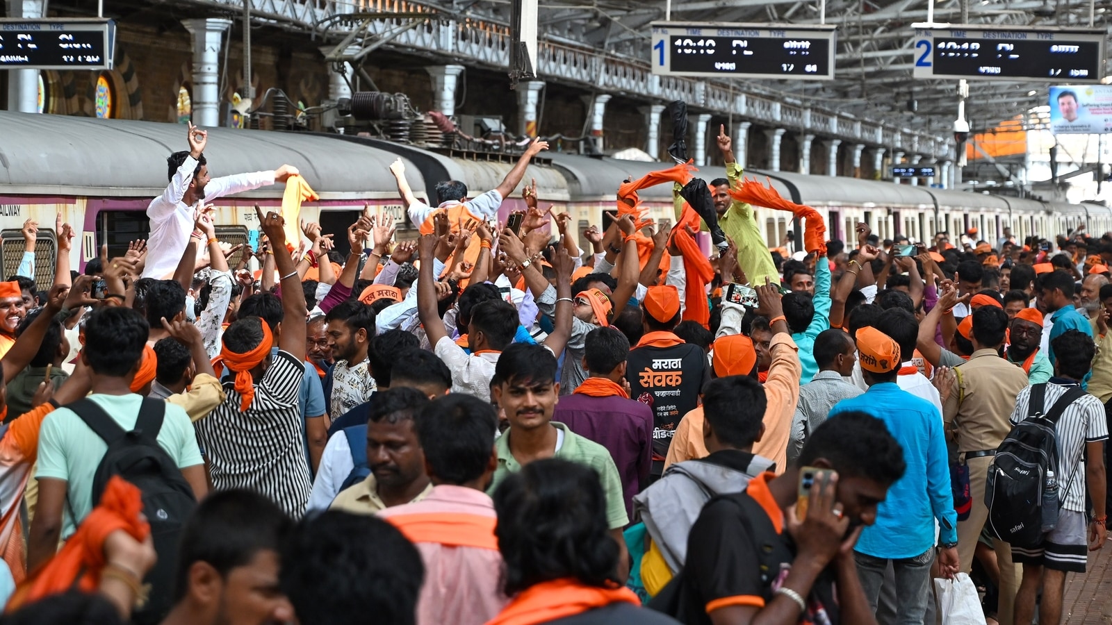 Hundreds of Maratha community members seeking quota gathered at the Chhatrapati Shivaji Maharaj Terminus (CSMT) and other areas in south Mumbai, causing traffic congestion and inconvenience to commuters.
