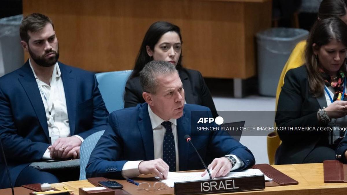 Israel’s ambassador to the United Nations Gilad Erdan speaks during a United Nations Security Council (UNSC) meeting on the Middle East, including the situation in Gaza and Israel on January 23, 2024 in New York City. The meeting comes during growing calls for Israel to allow more aid into Gaza and to accept a future Palestinian state.