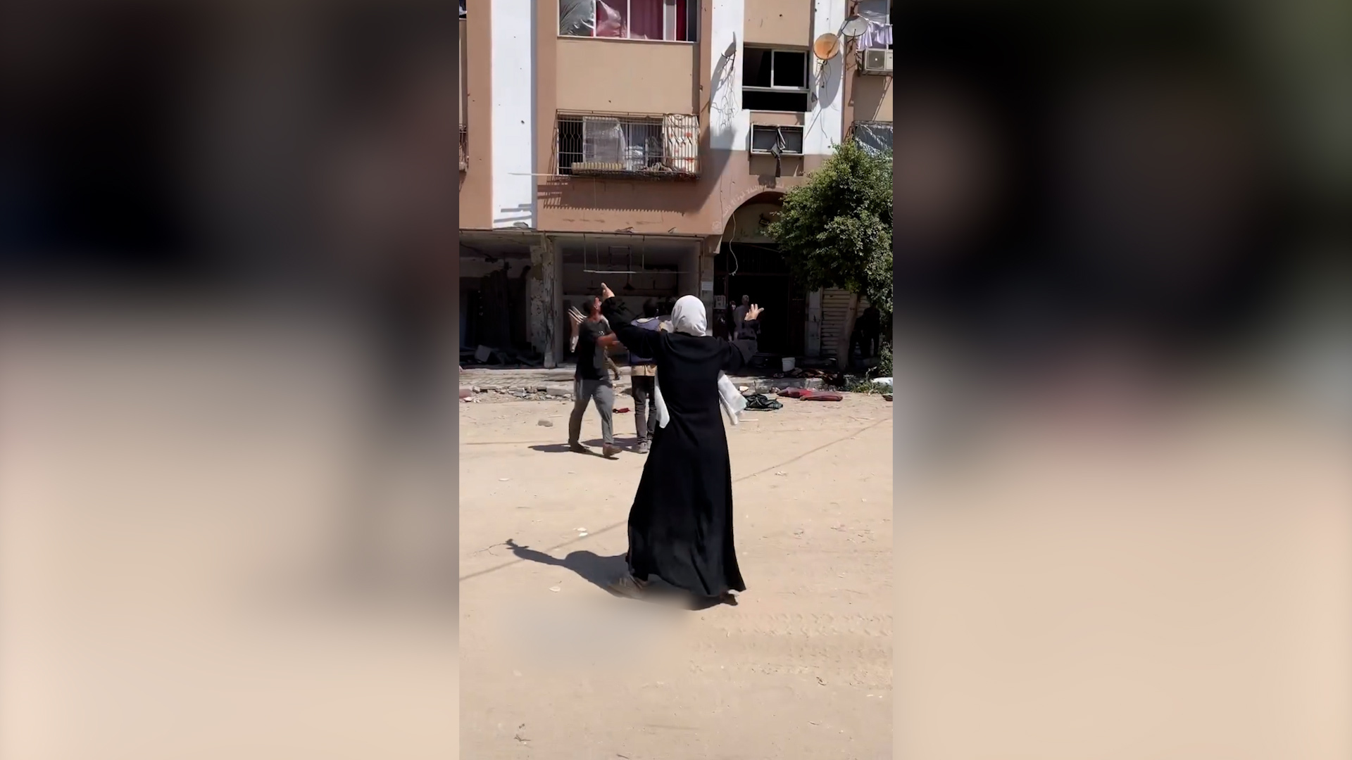 Families were filmed throwing their belongings out of windows in panic as they tried to salvage what they could after Israel gave them ‘minutes to flee’ the Mahna Tower in Gaza City before it was bombed and destroyed.