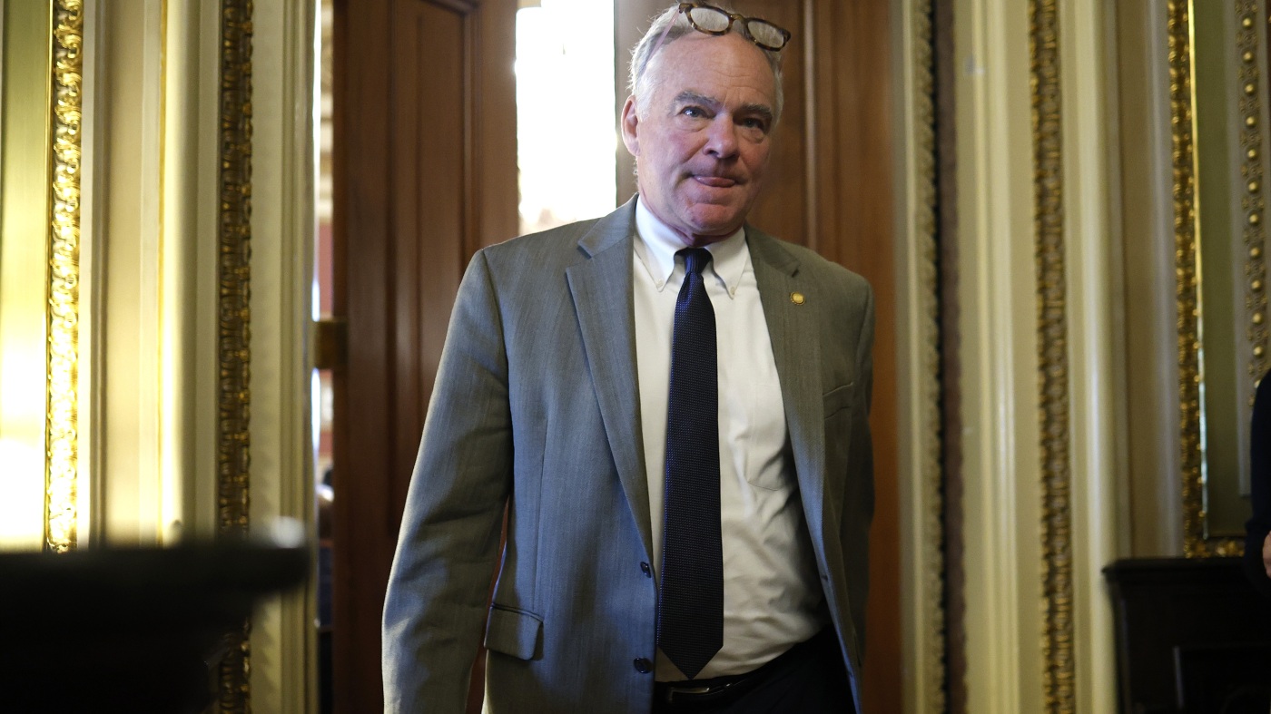 Sen. Tim Kaine, D-Va., leaves a Senate Democratic meeting at the U.S. Capitol in Washington, Oct. 3.